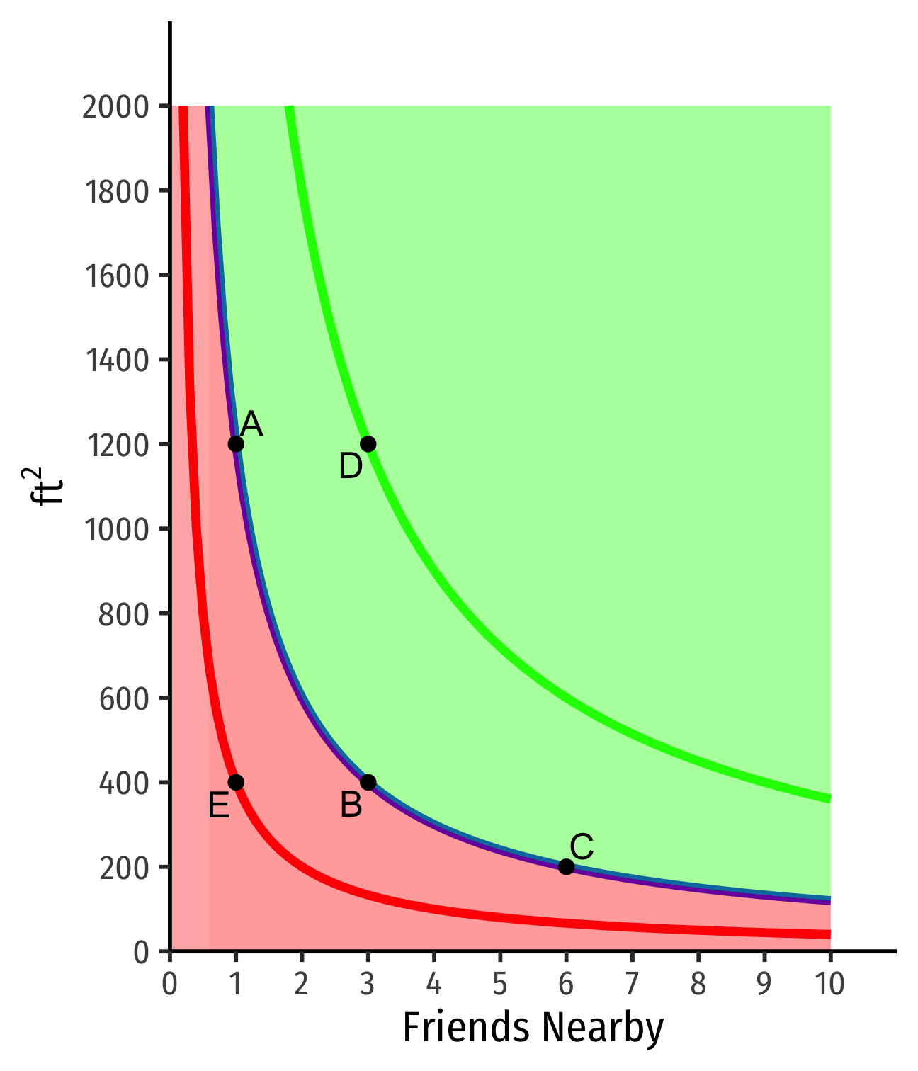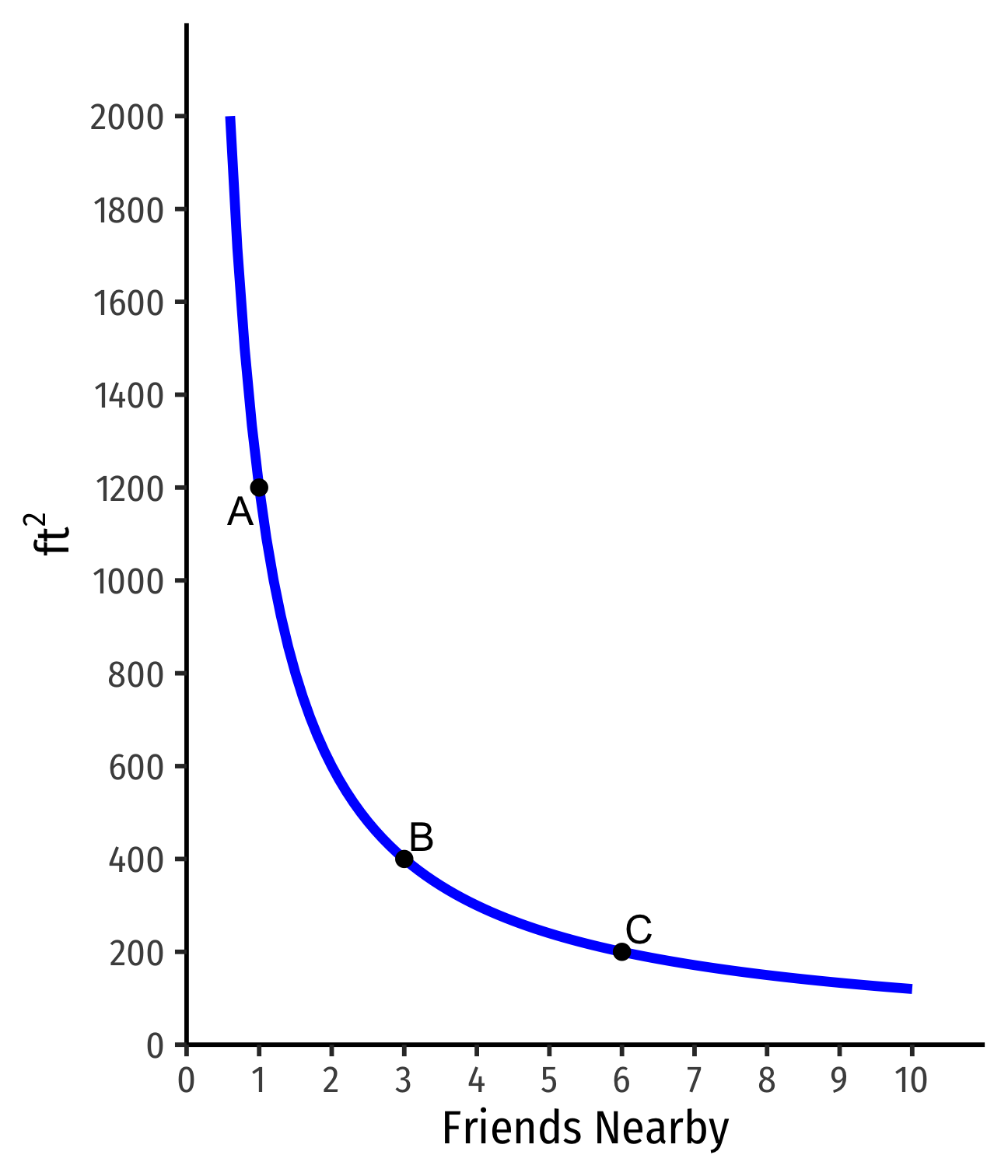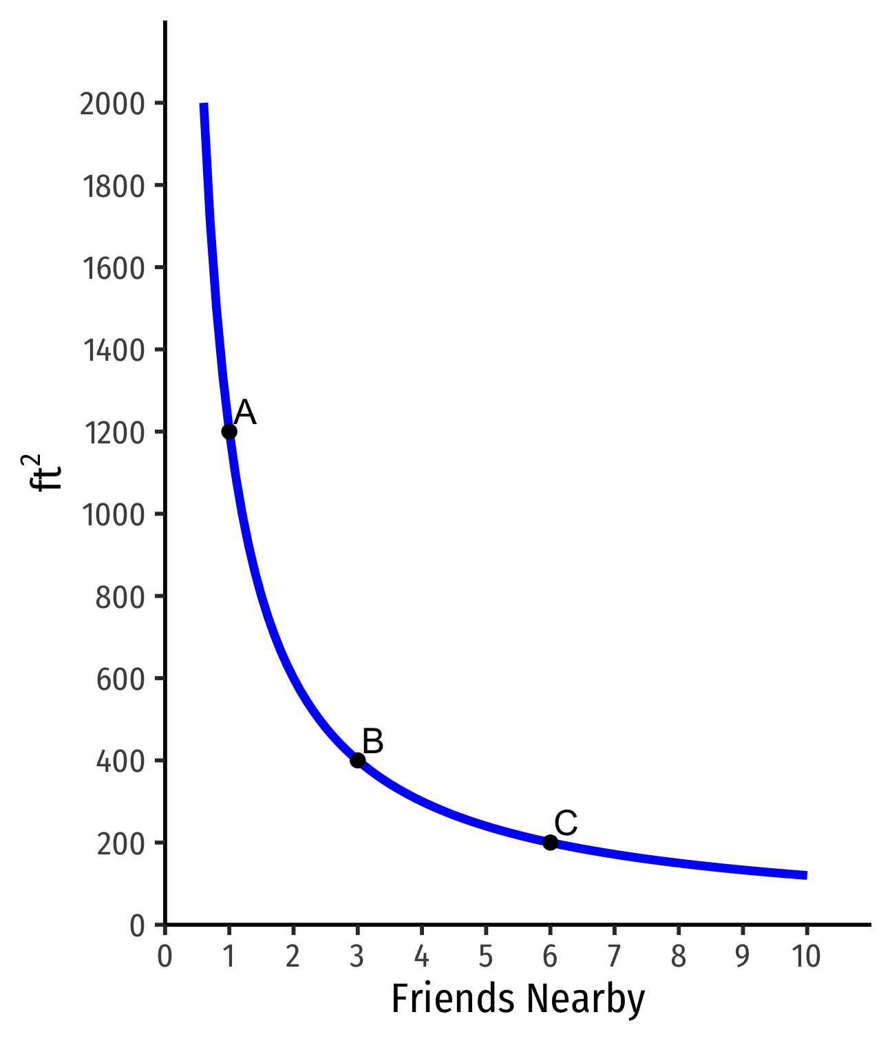 If I take away one friend nearby, how many more ft2 would you need to keep you indifferent?