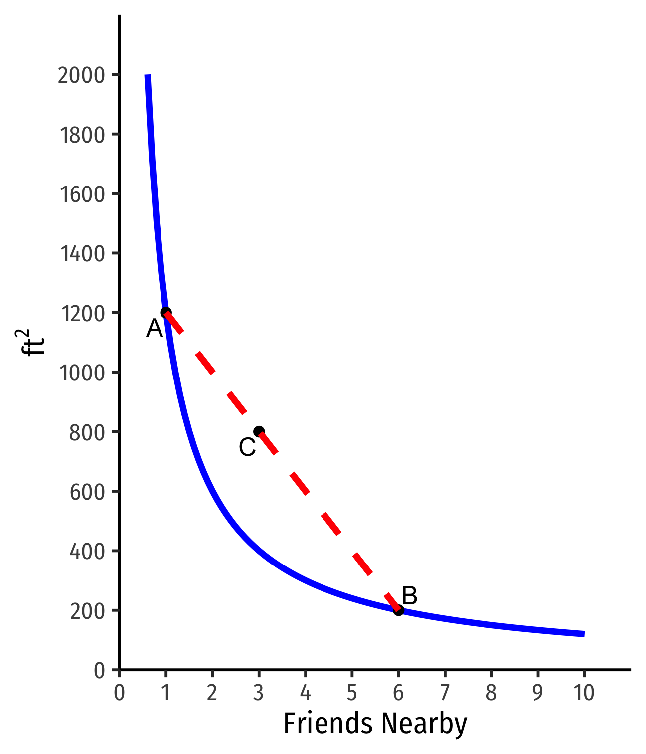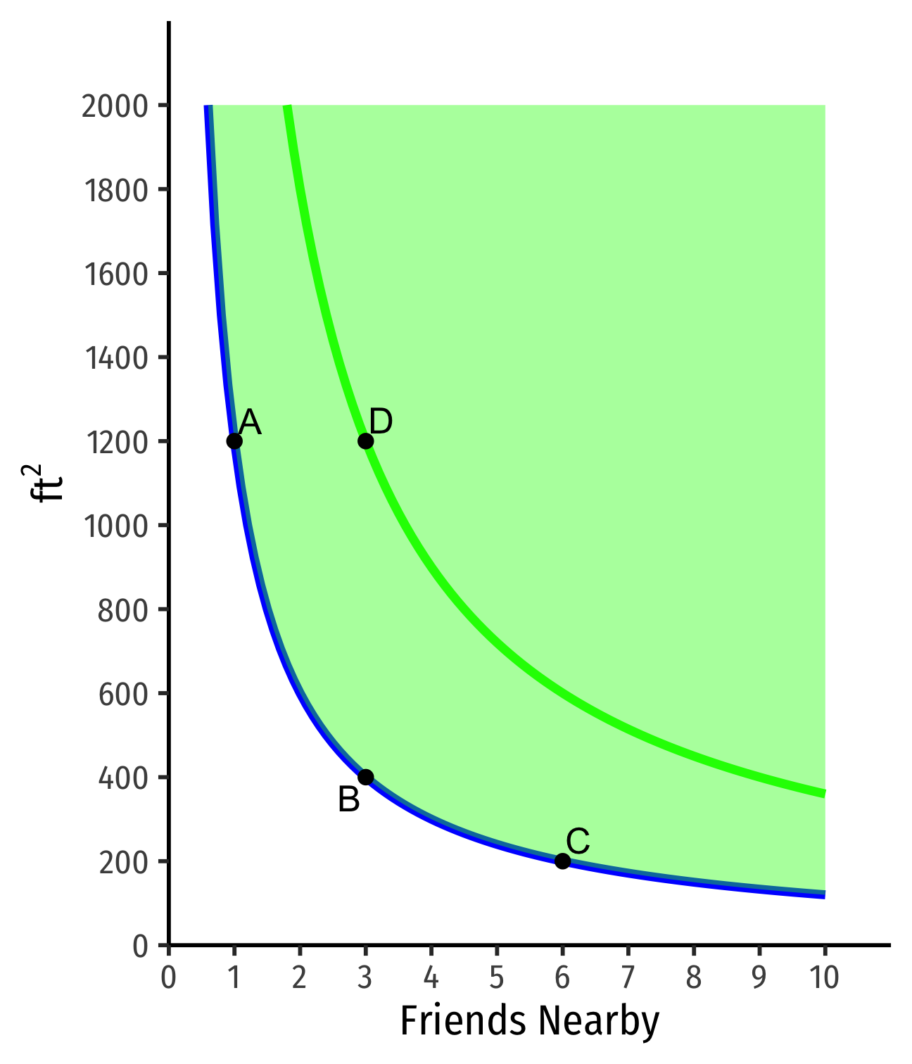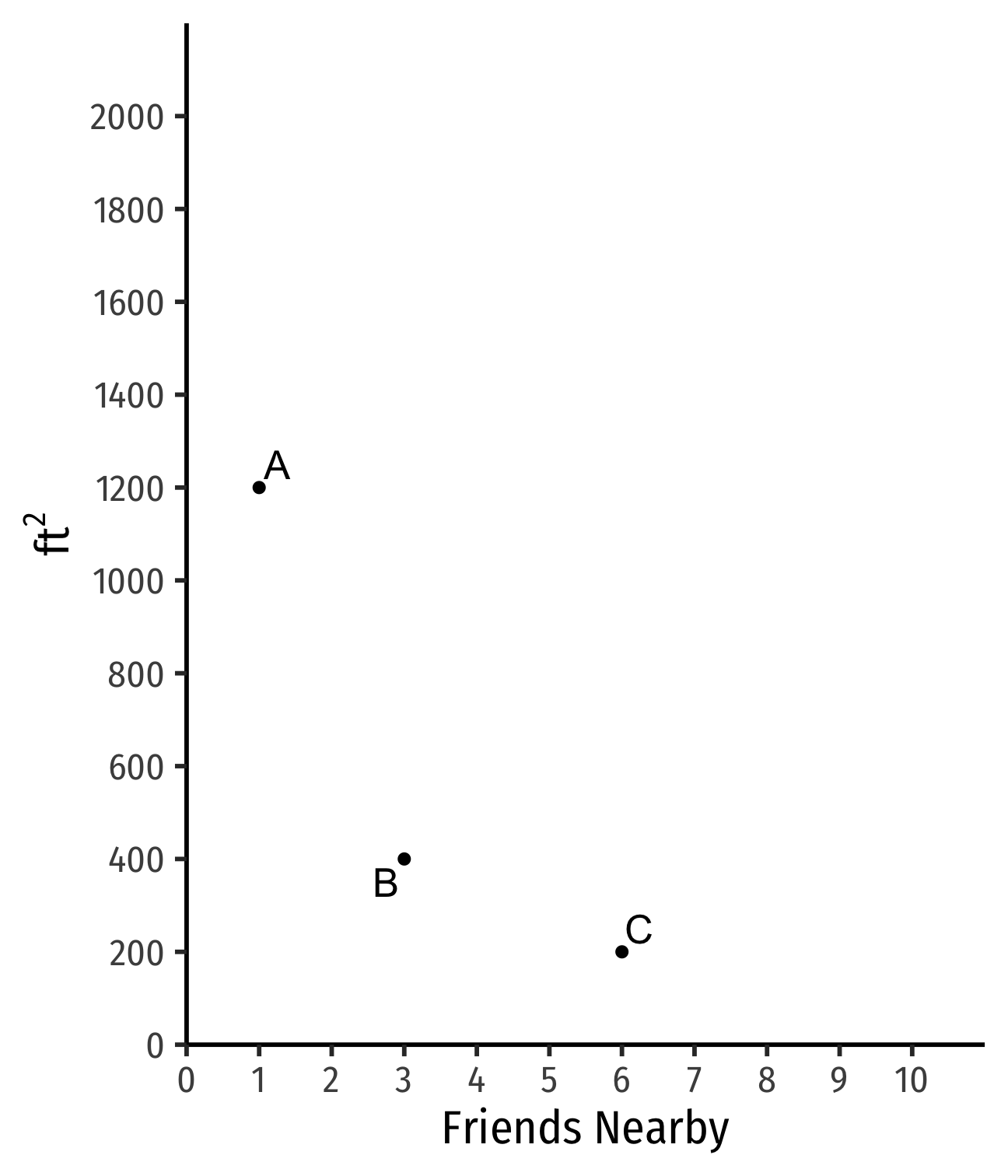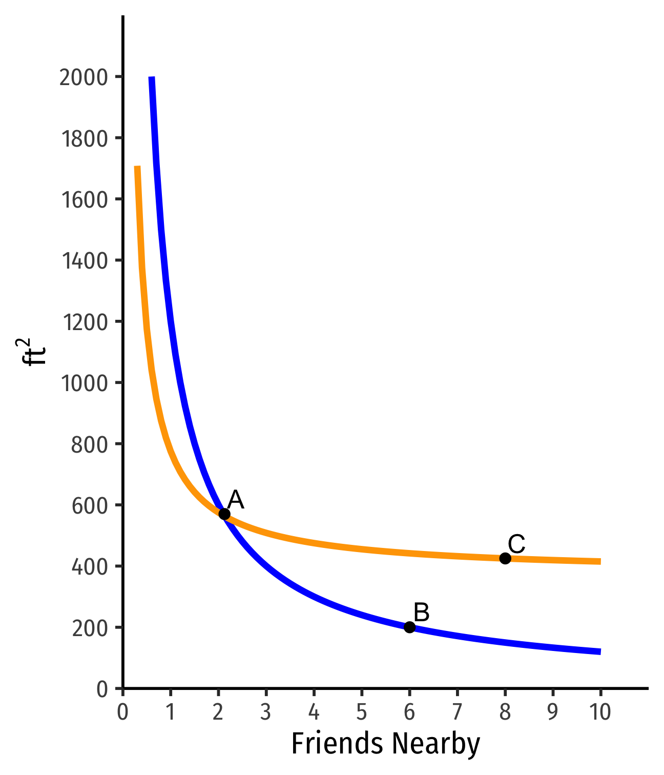 If I take away one friend nearby, how many more ft2 would you need to keep you indifferent?