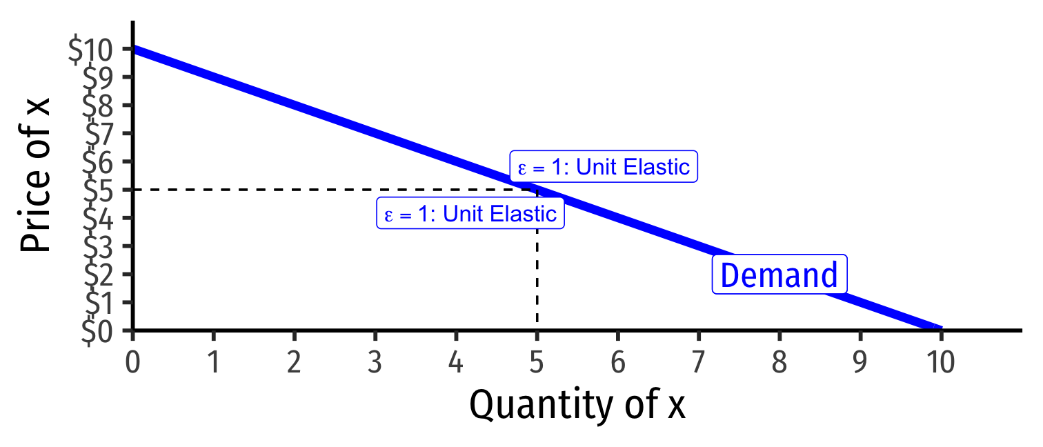 Revenue max. at price where ϵ=−1