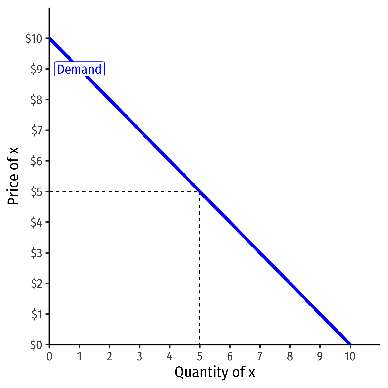 Horizontally: at any given price, how many units person wants to buy