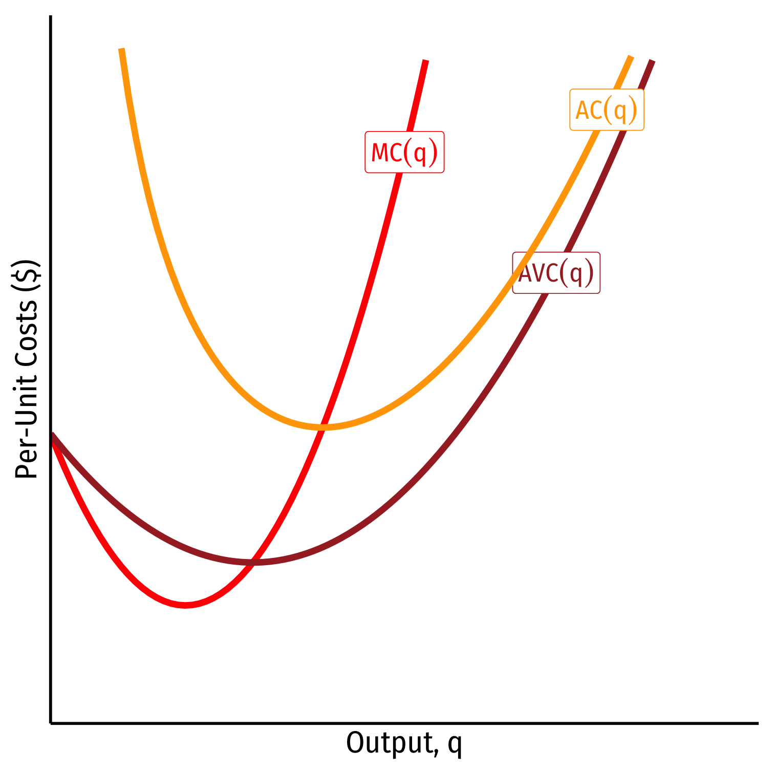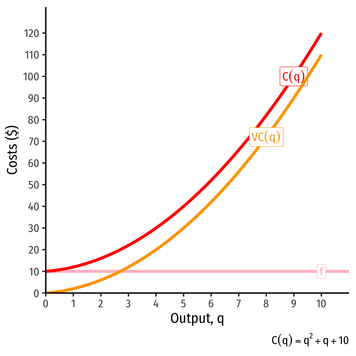 2. Variable costs, VC(q) are costs that vary with output (notice the variable in them!)