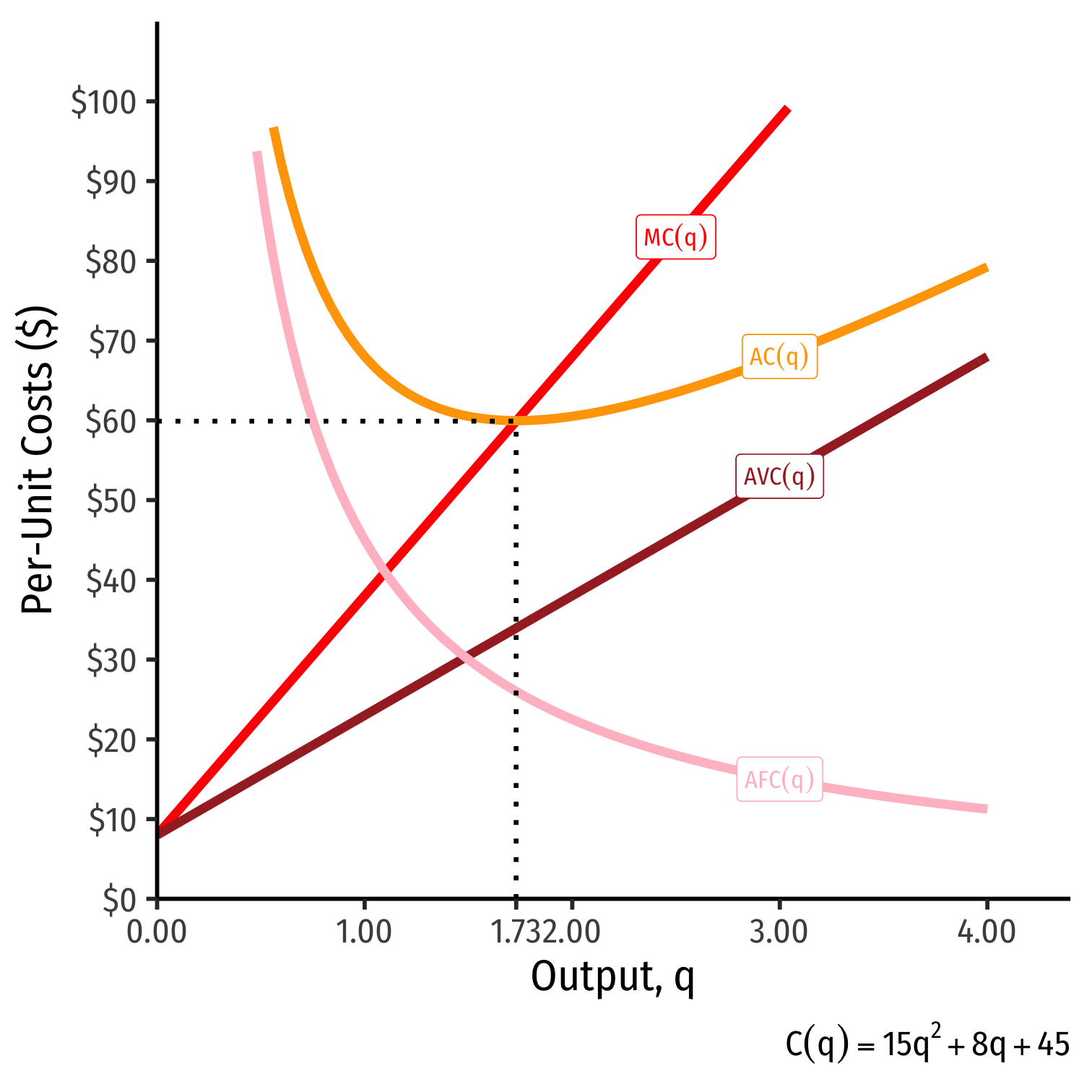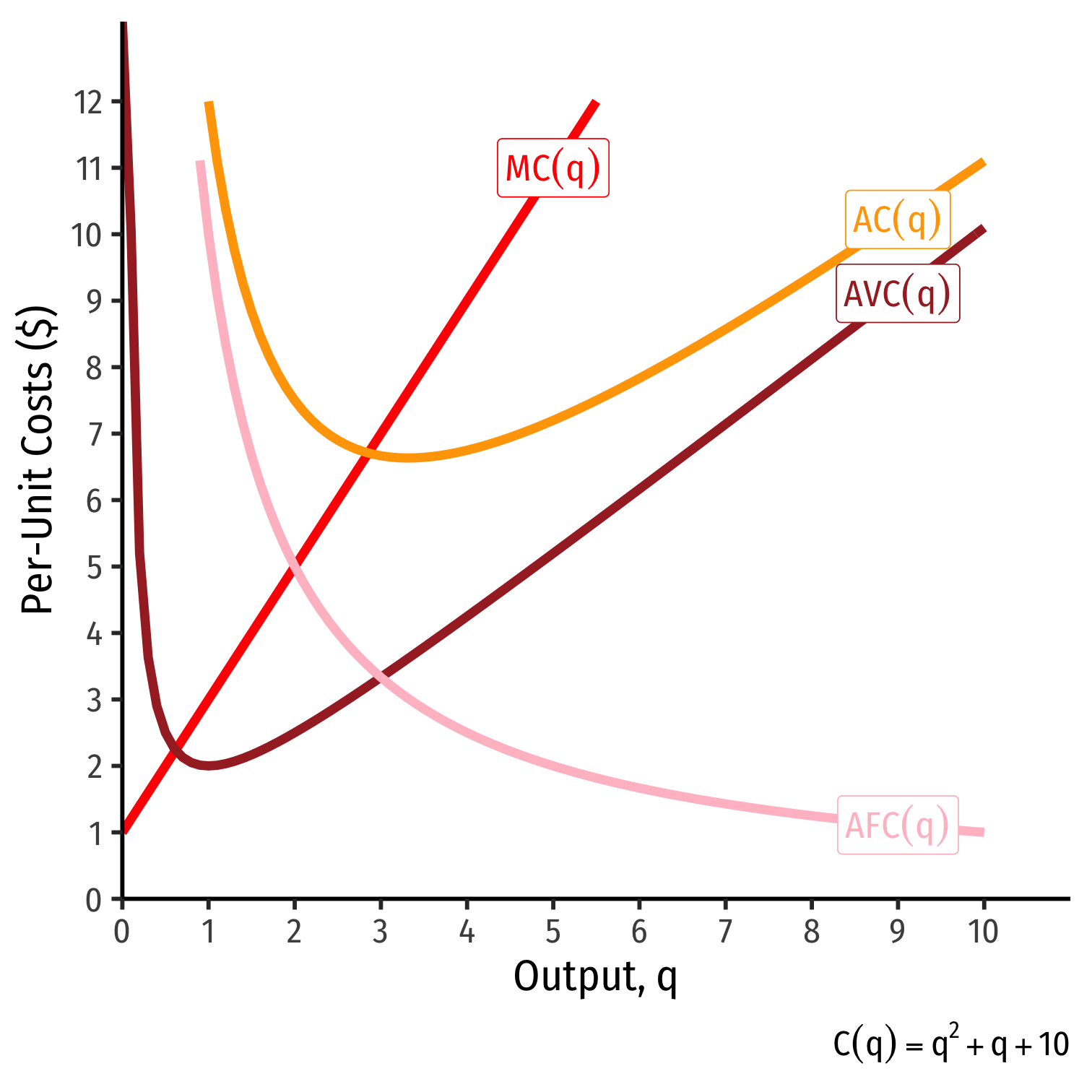 | q | C(q) | MC(q) | AFC(q) | AVC(q) | AC(q) |