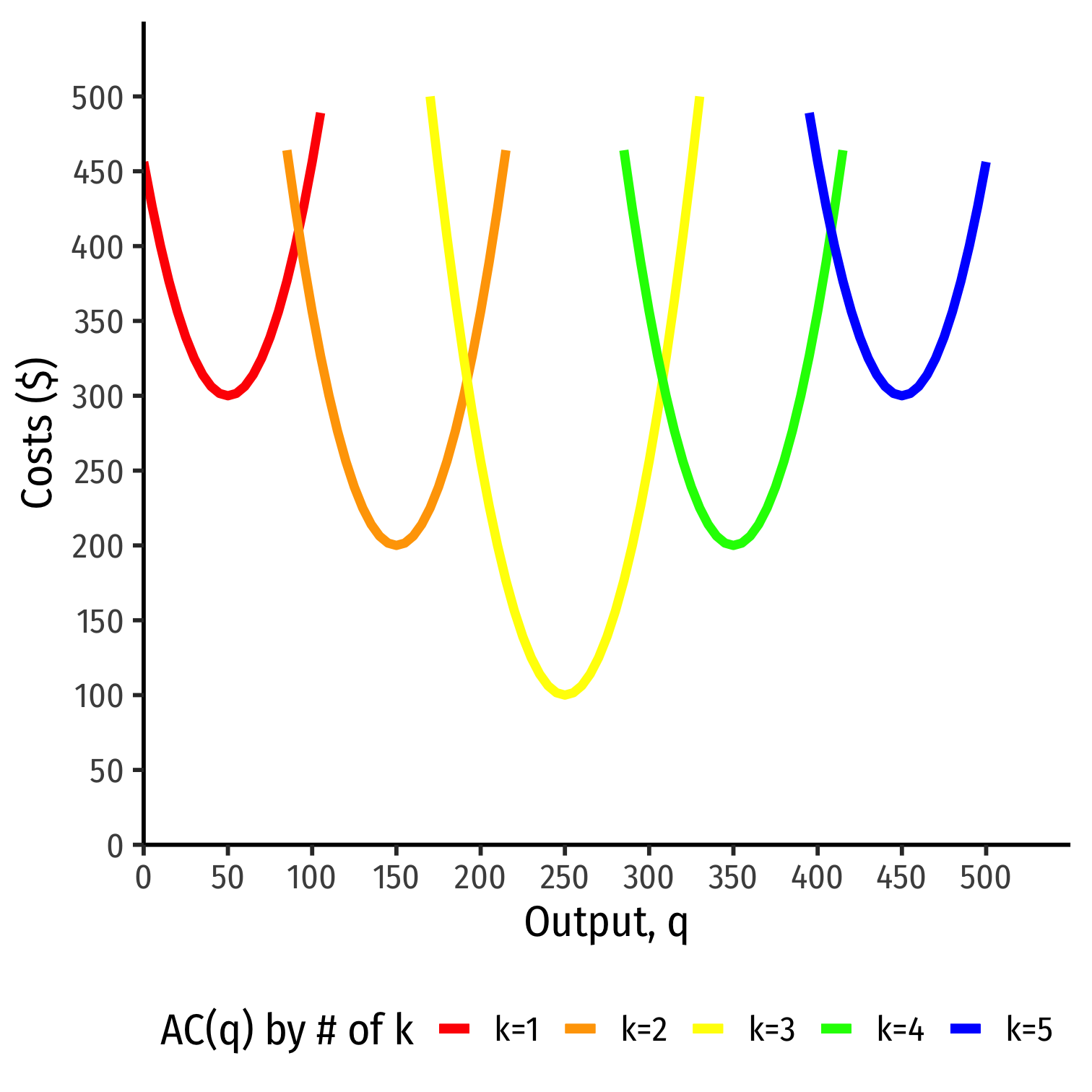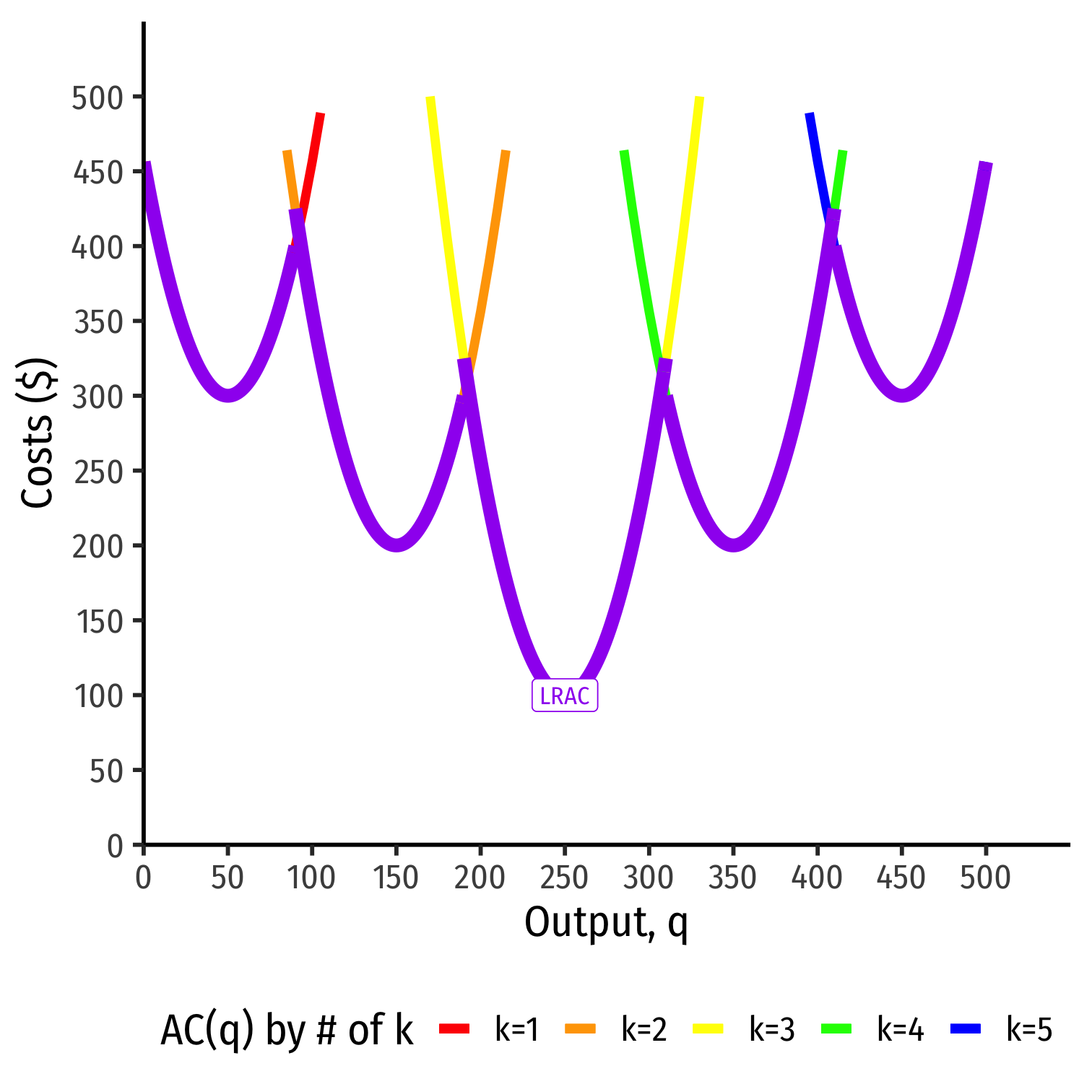 Separate short run average cost (SRAC) curves for each amount of k potentially chosen