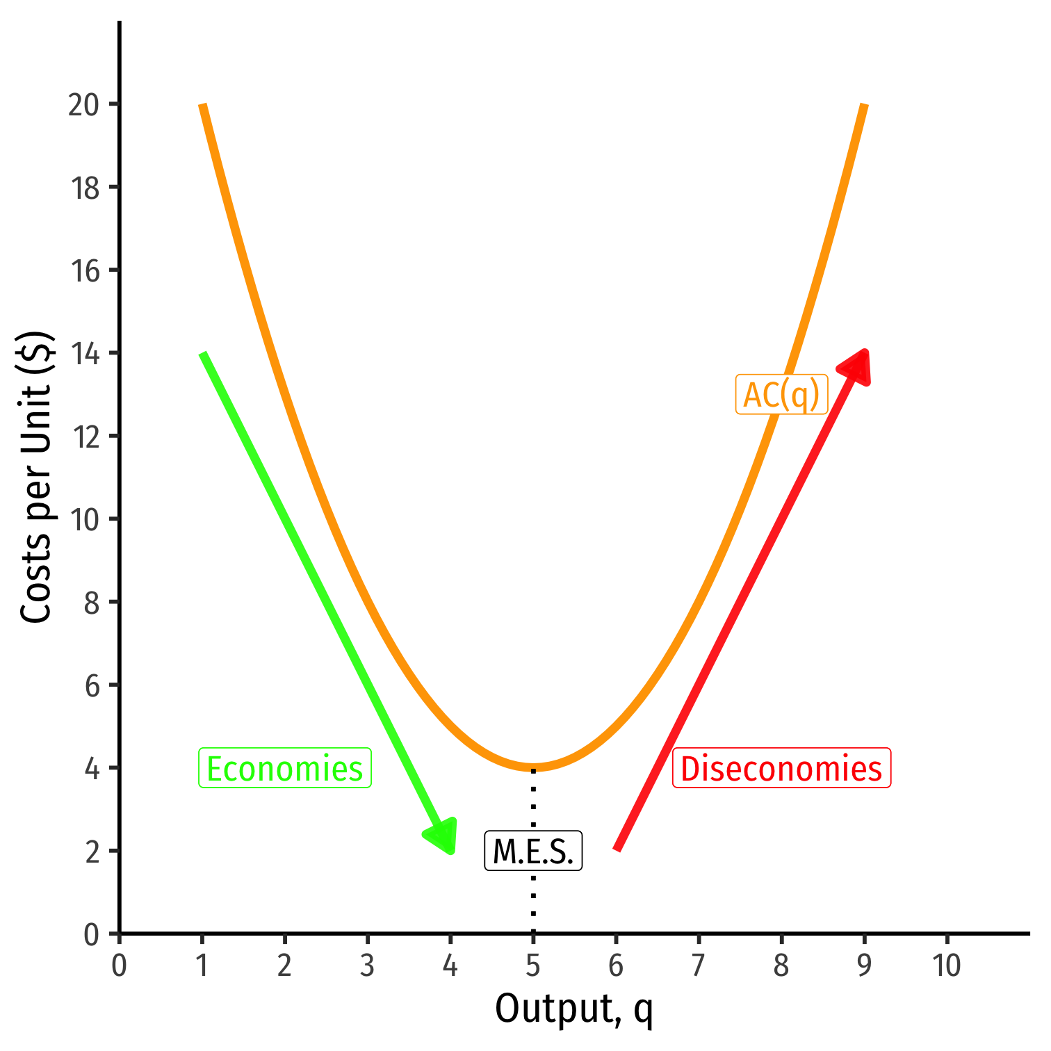 Minimum Efficient Scale: q with the lowest AC(q)