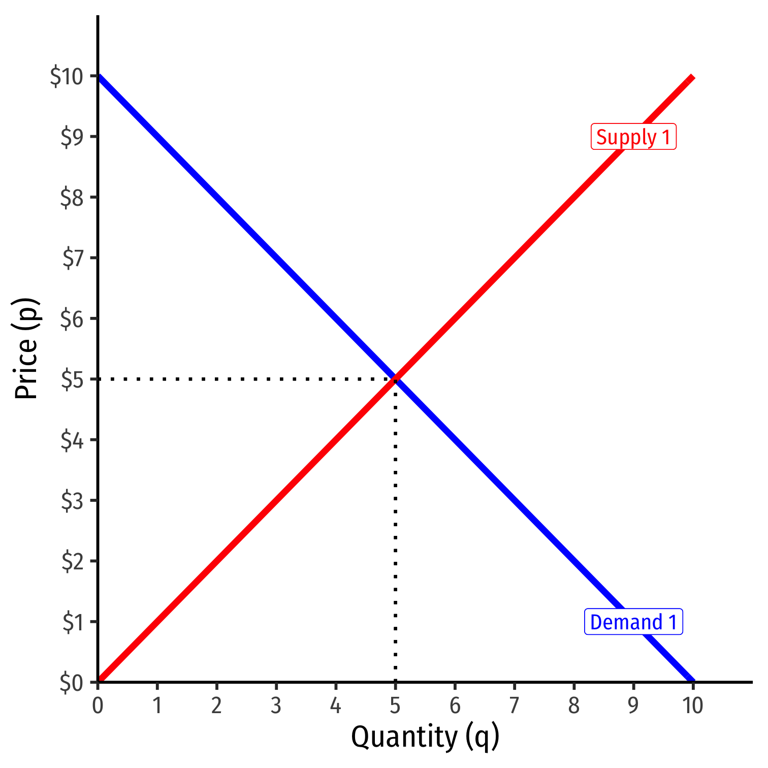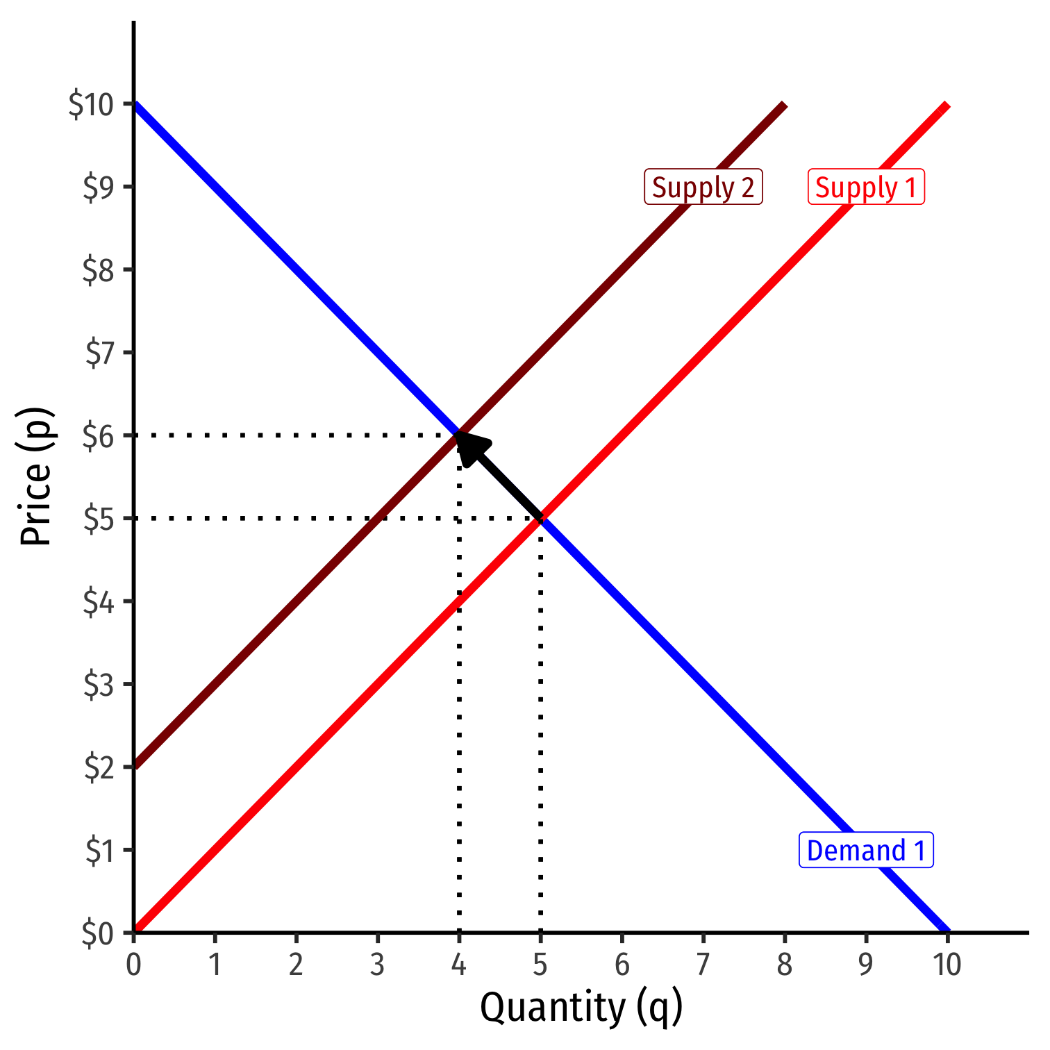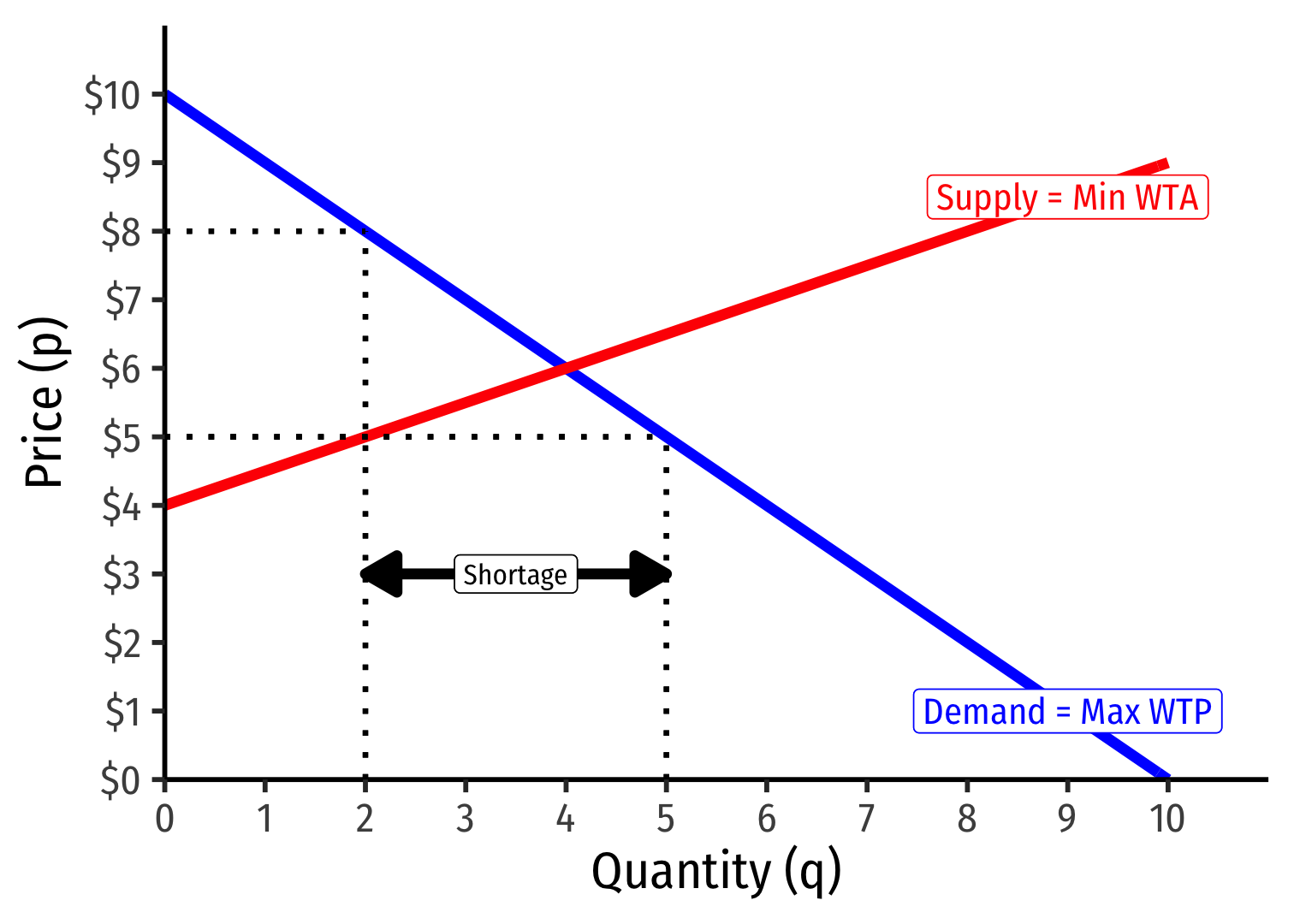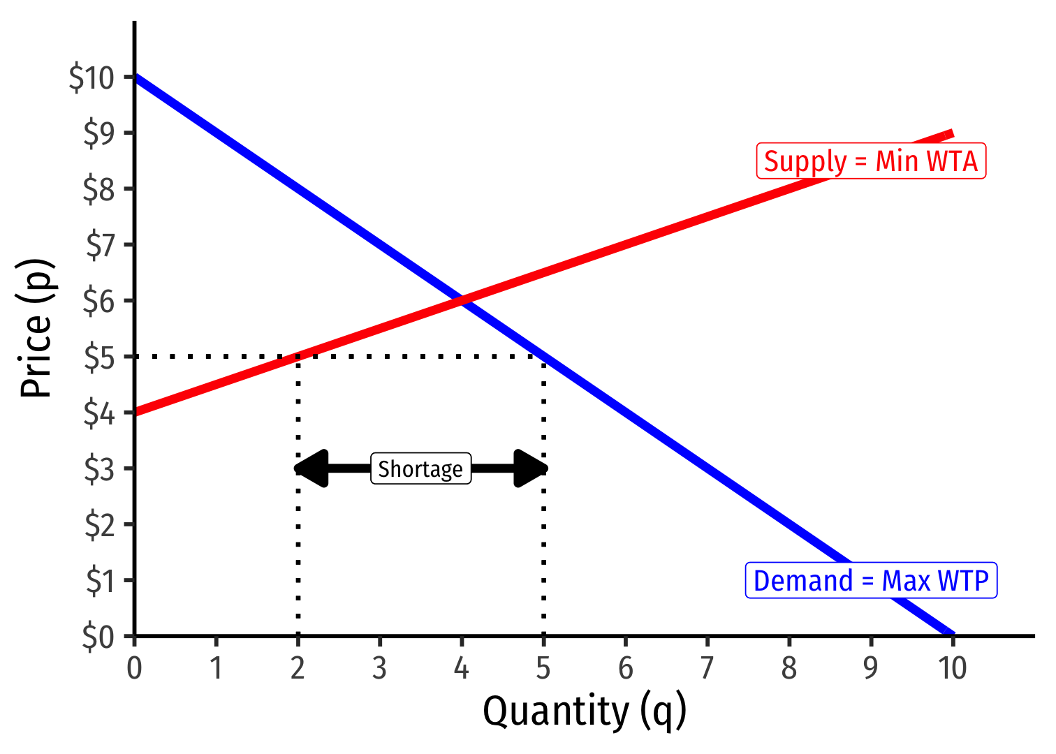Market-clearing (equilibrium) quantity exchanged (q∗): 4