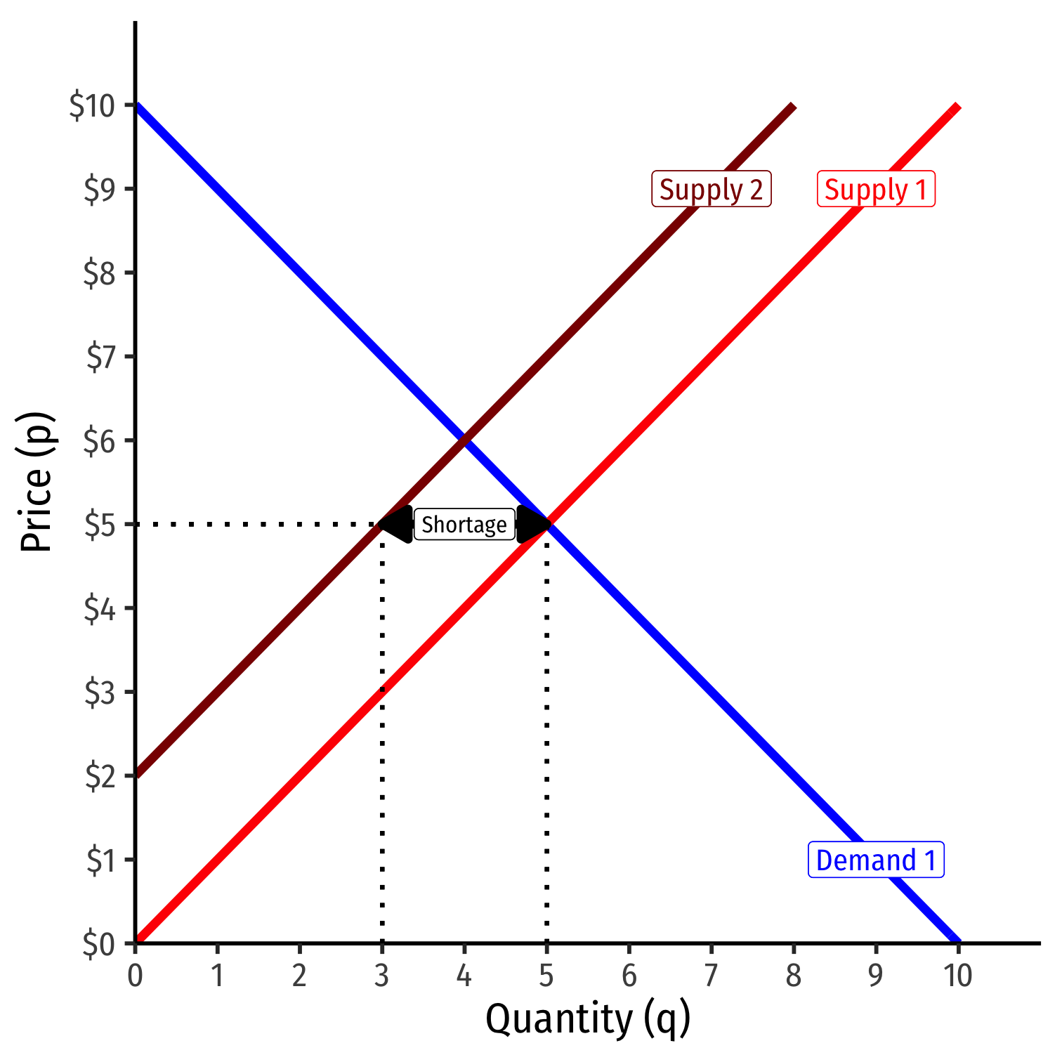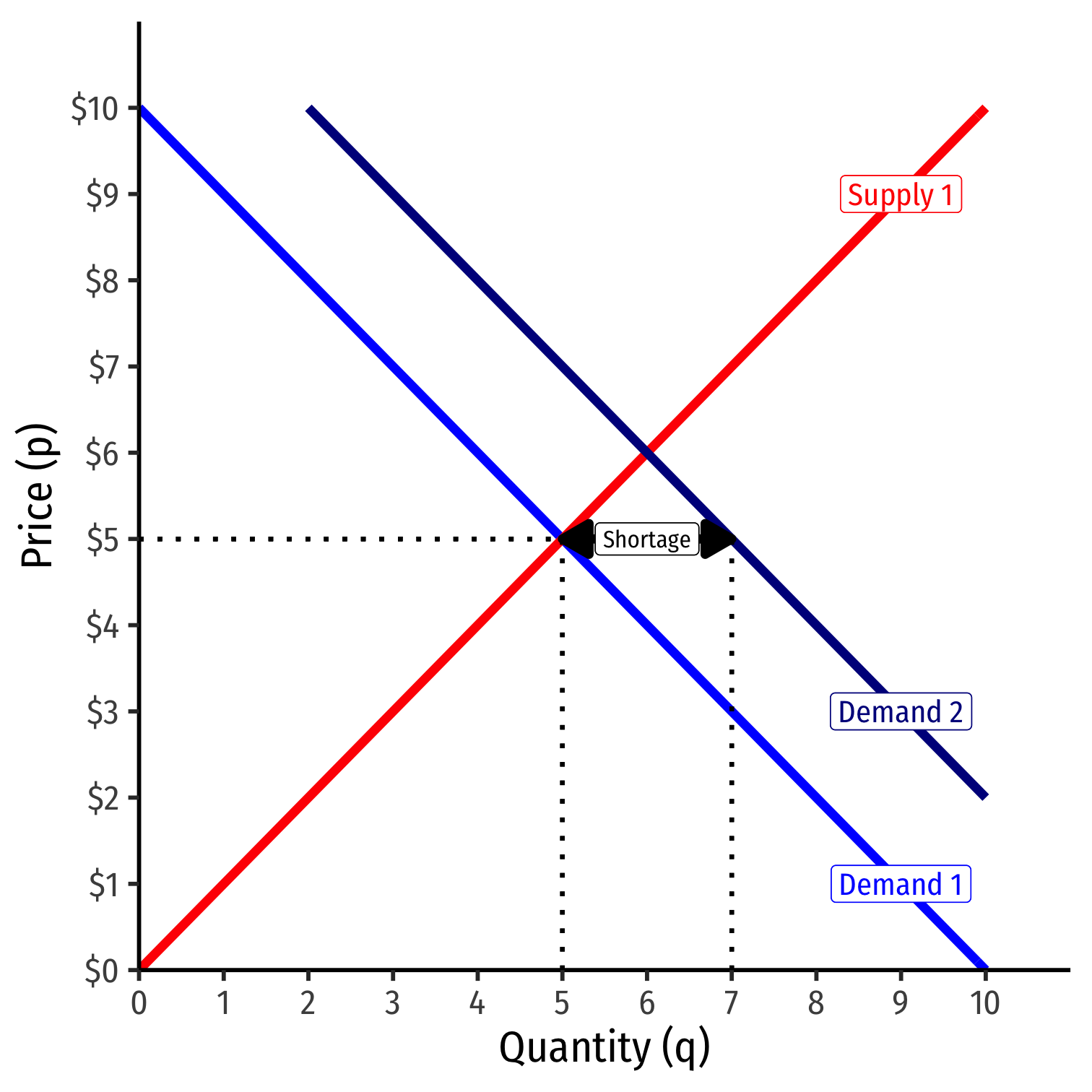 At the original market price, a shortage! (qD>qS)