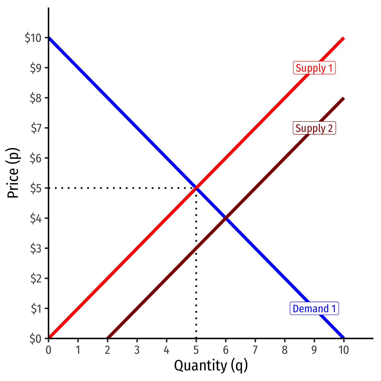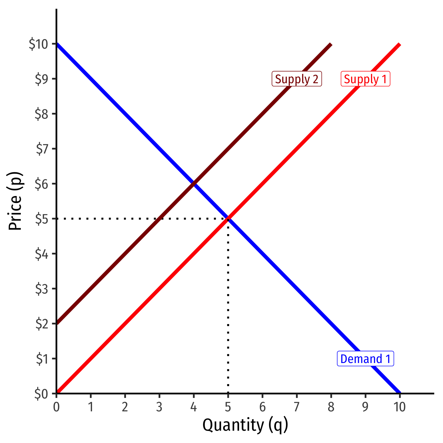 Example: Consider any price below $6, such as $5: