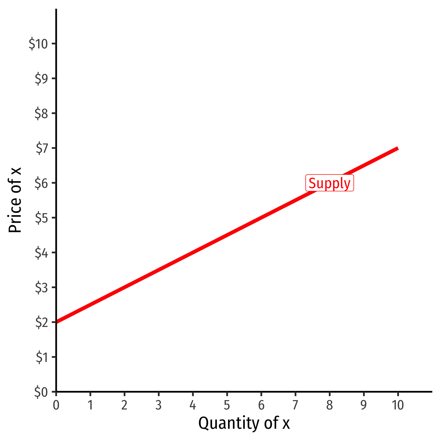 Vertical intercept called the "Choke price": price where qS=0 ($2), just low enough to discourage any sales