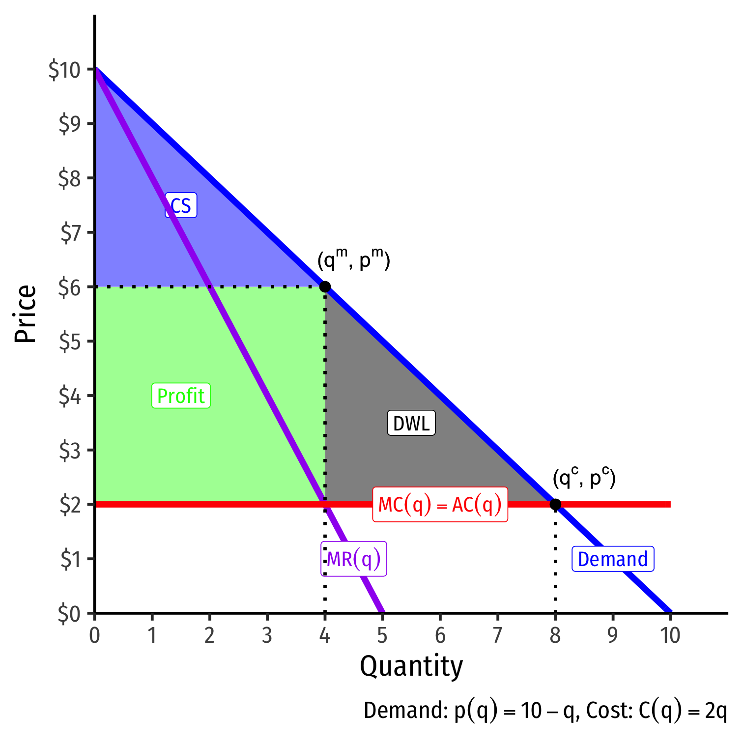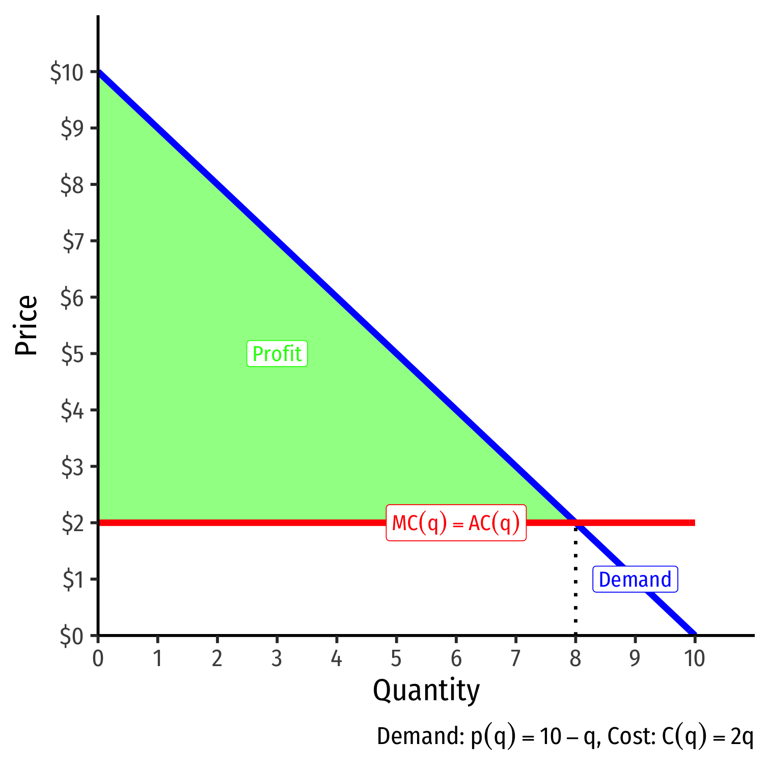Assume the only cost of producing drinks is a constant marginal (and average) cost of $2.