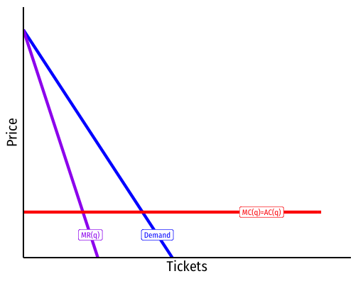 Assume a constant marginal (and average) cost of $10/seat.